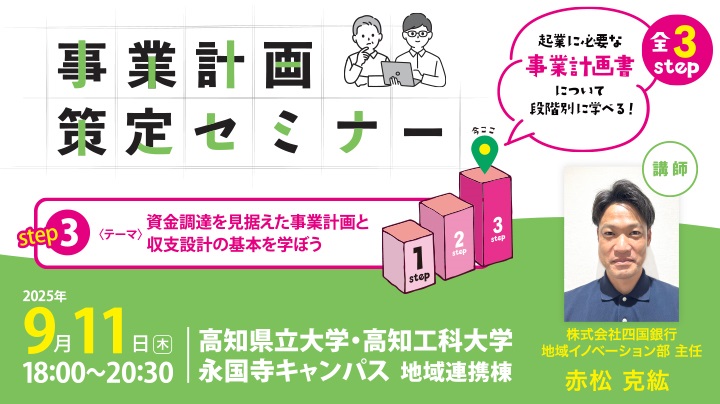事業計画策定セミナー「STEP③ 資金調達を見据えた事業計画と収支設計の基本を学ぼう!」 |