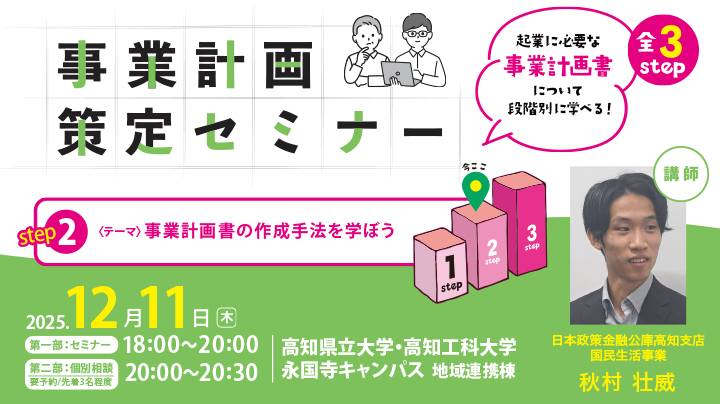起業に必要な事業計画書について段階別に学べる「事業計画策定セミナー」のSTEP2。